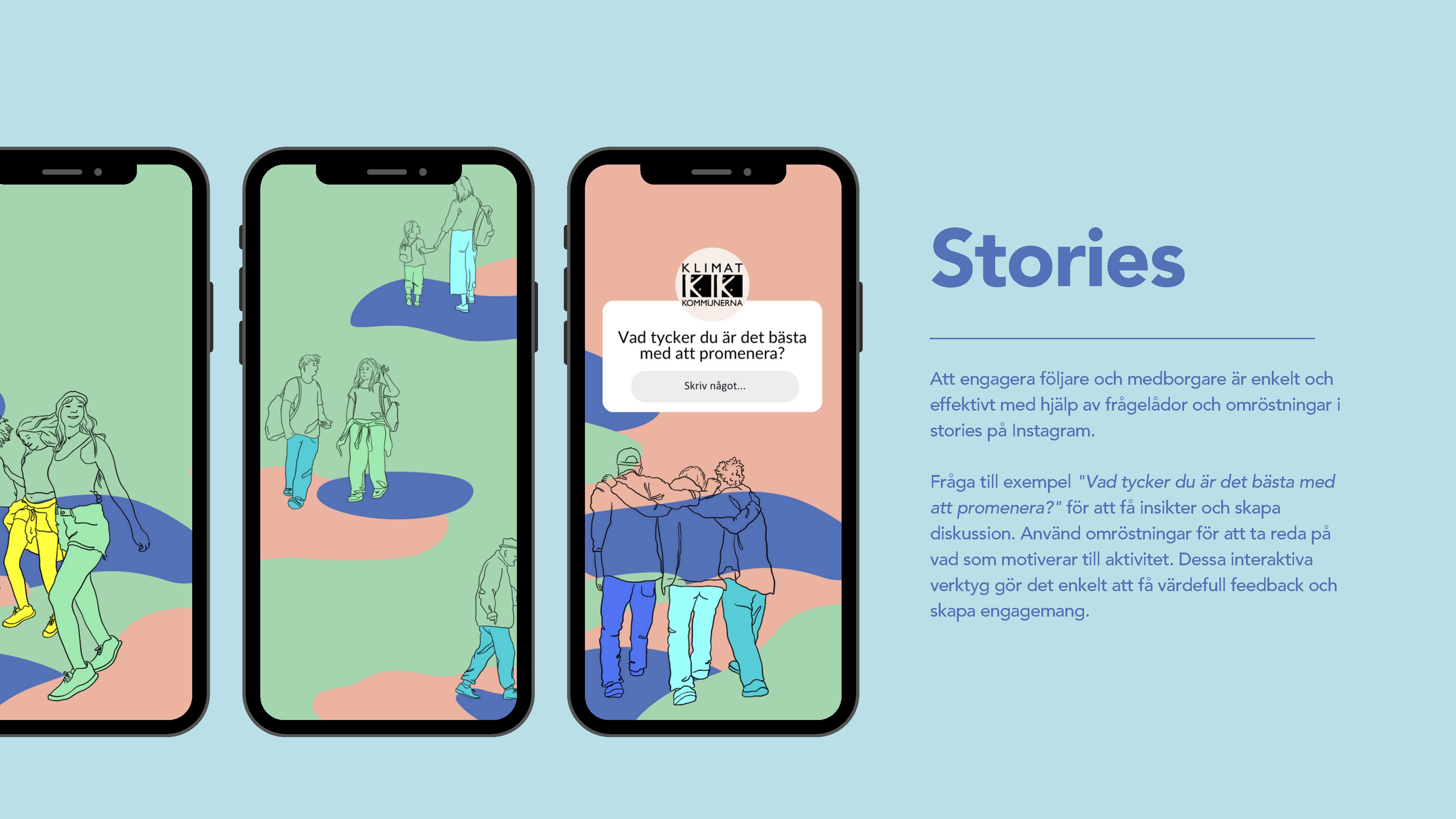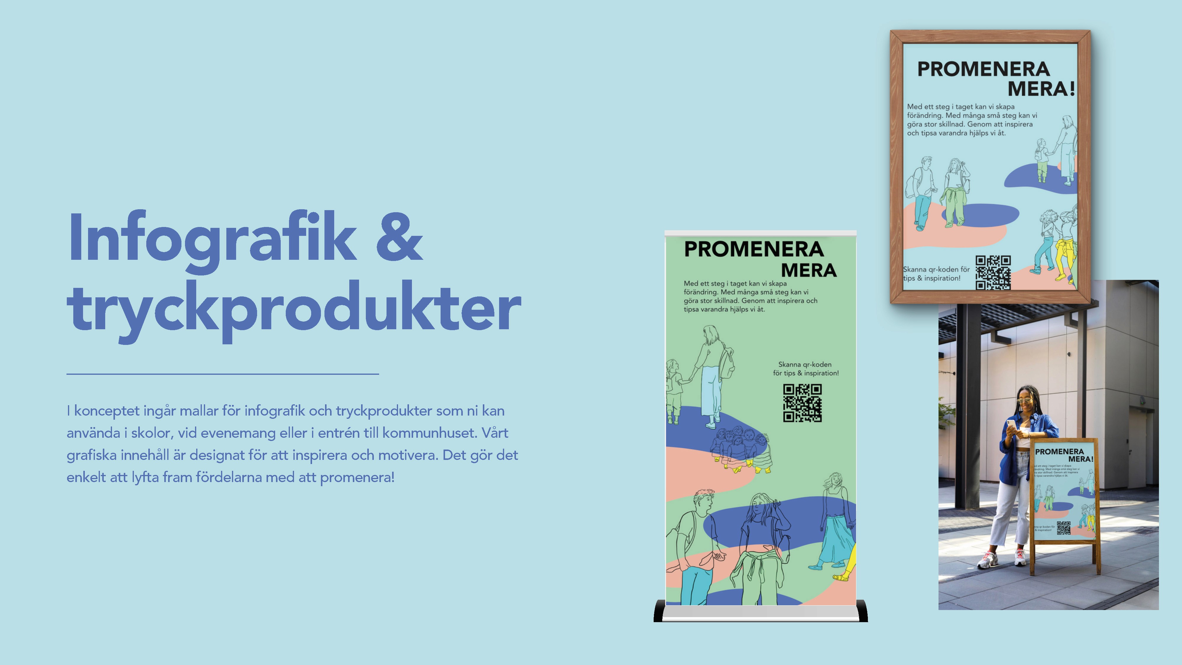 Det handlar om att ta det första steget, att upptäcka glädjen i en enkel promenad. Varje steg räknas för att nå en bättre hälsa och en hållbar framtid. Resultatet blev ett kommunikationskoncept med moduler som bland annat innehöll en digital verktygslåda, aktuell forskning relaterat till att promenera och skräddarsydda budskap. Med en stark och enhetlig grafisk identitet hölls en tilltalande röd tråd, därtill inlägg för SoMe och stories med mera.
