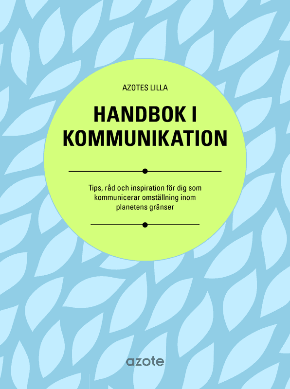 Tips, råd och inspiration för dig som kommunicerar omställning inom planetens gränser. Azotes lilla handbok i kommunikation är gratis. Om du bor i Stockholmsområdet är du välkommen att kika förbi vårt kontor och hämta ut ditt ex. Om du bor någon annanstans i landet, fyll i formuläret nedan så skickar vi boken till dig på posten.